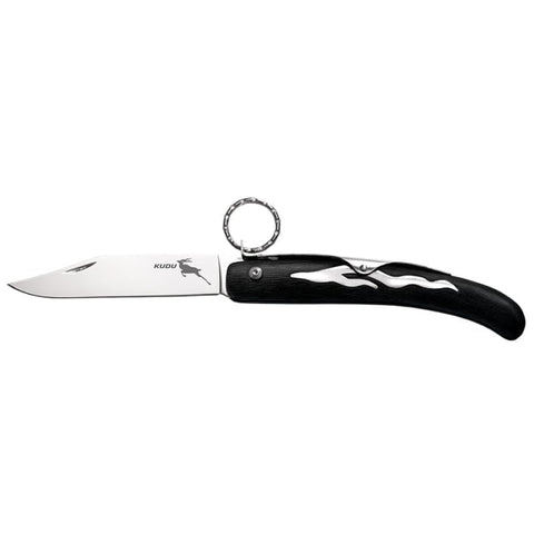 Avec une lame de 108 mm au profil Clip Point et un tranchant lisse, il assure des coupes précises et efficaces. Le manche en Zy-Ex renforcé de verre offre une prise en main confortable, même dans des conditions humides. Le Kudu se distingue par son système de sécurité Ring Lock, garantissant une utilisation sécurisée en toutes circonstances.