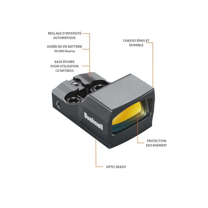 Le système de montage 2 en 1 offre une flexibilité appréciable, compatible avec divers pistolets optic ready. Le viseur intègre les dernières technologies de Bushnell, demeurant accessible et user-friendly pour les experts et les tireurs avertis. Vivez une expérience de précision grâce à cet équipement conçu pour durer.